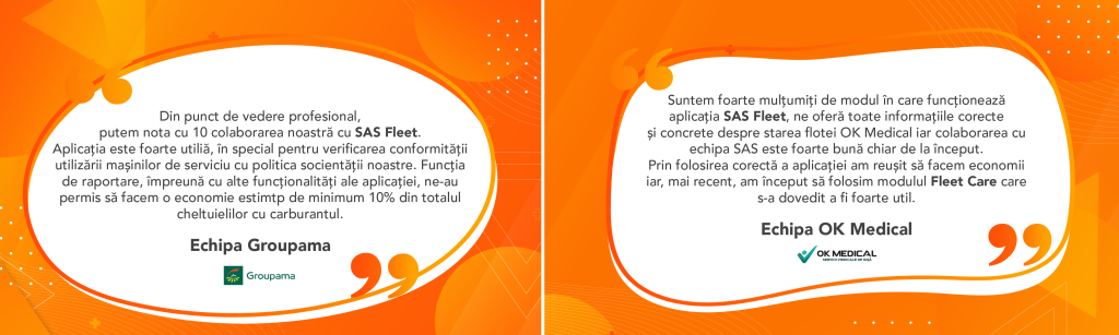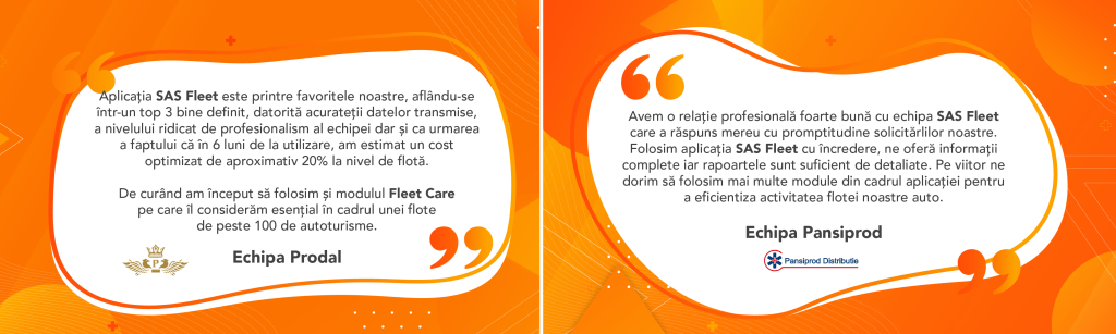 Mai jos, puteți să vedeți ce spun despre colaborarea cu SAS Fleet Tracking reprezentanții unora dintre cei mai importanți clienți ai noștri.